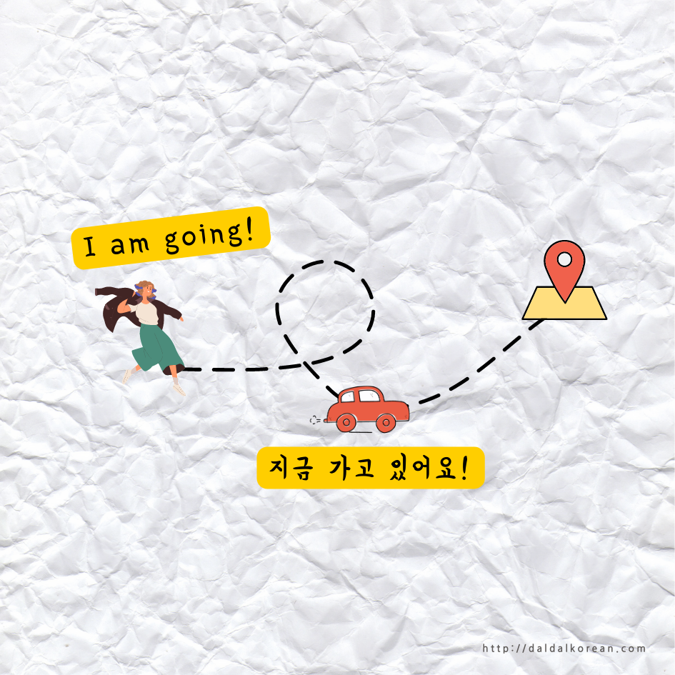| 가다 (to go) | 가고 있어요. I am on my way. |