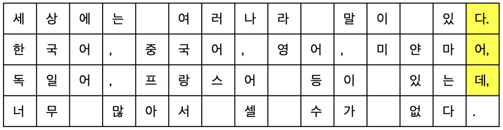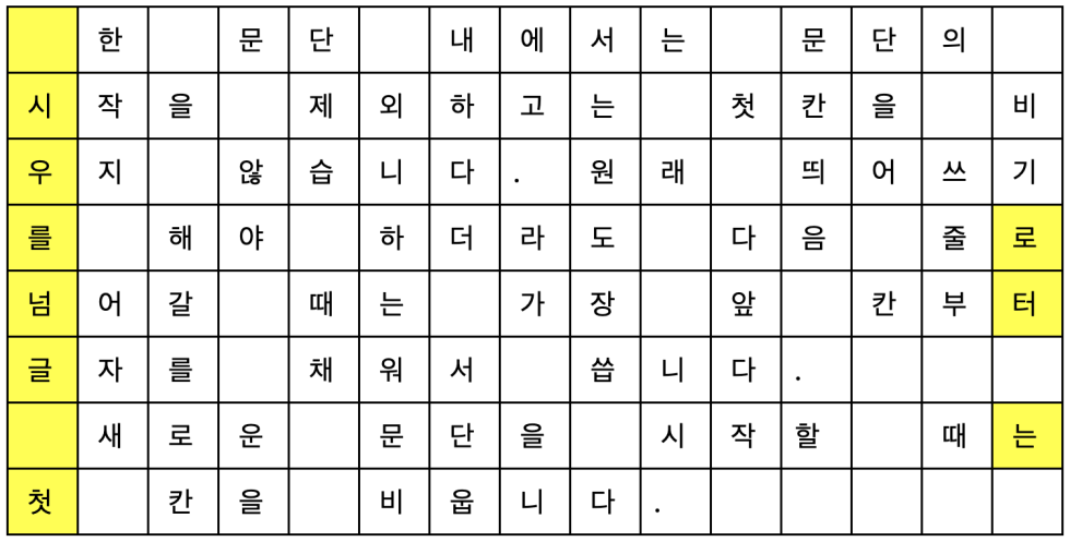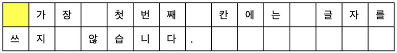 1. 가장 첫번째 칸에는 글자를 쓰지 않습니다.