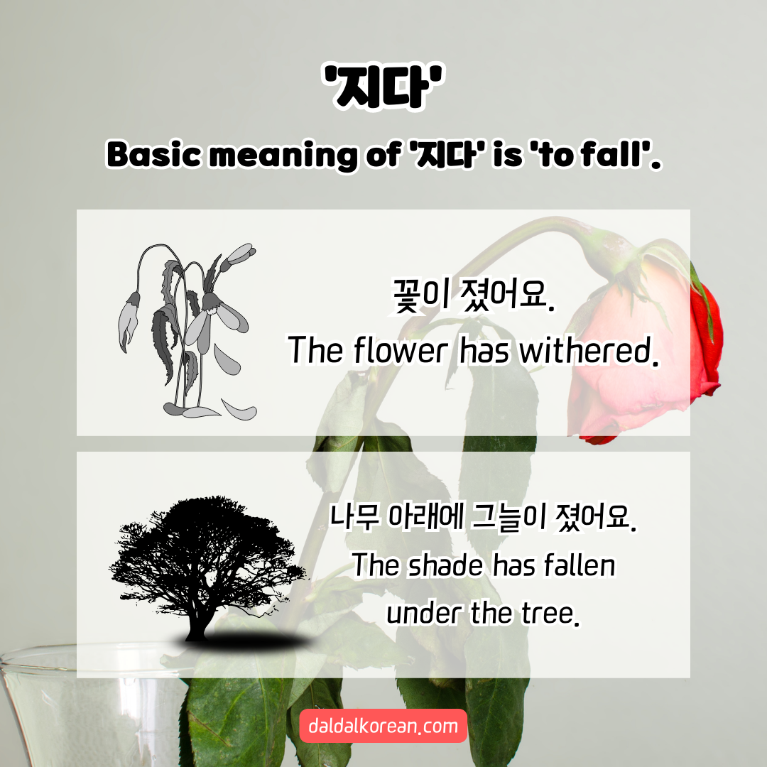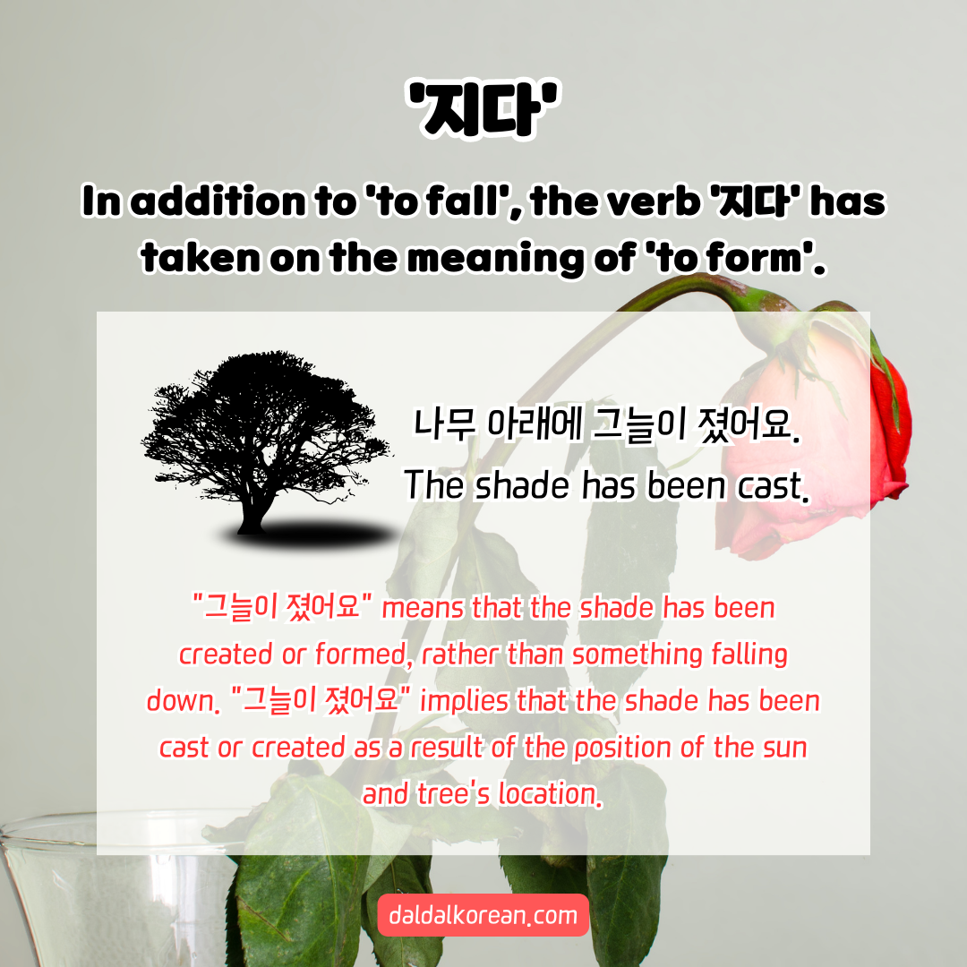 In addition to 'to fall', the verb '지다' has taken on the meaning of 'to form'.
