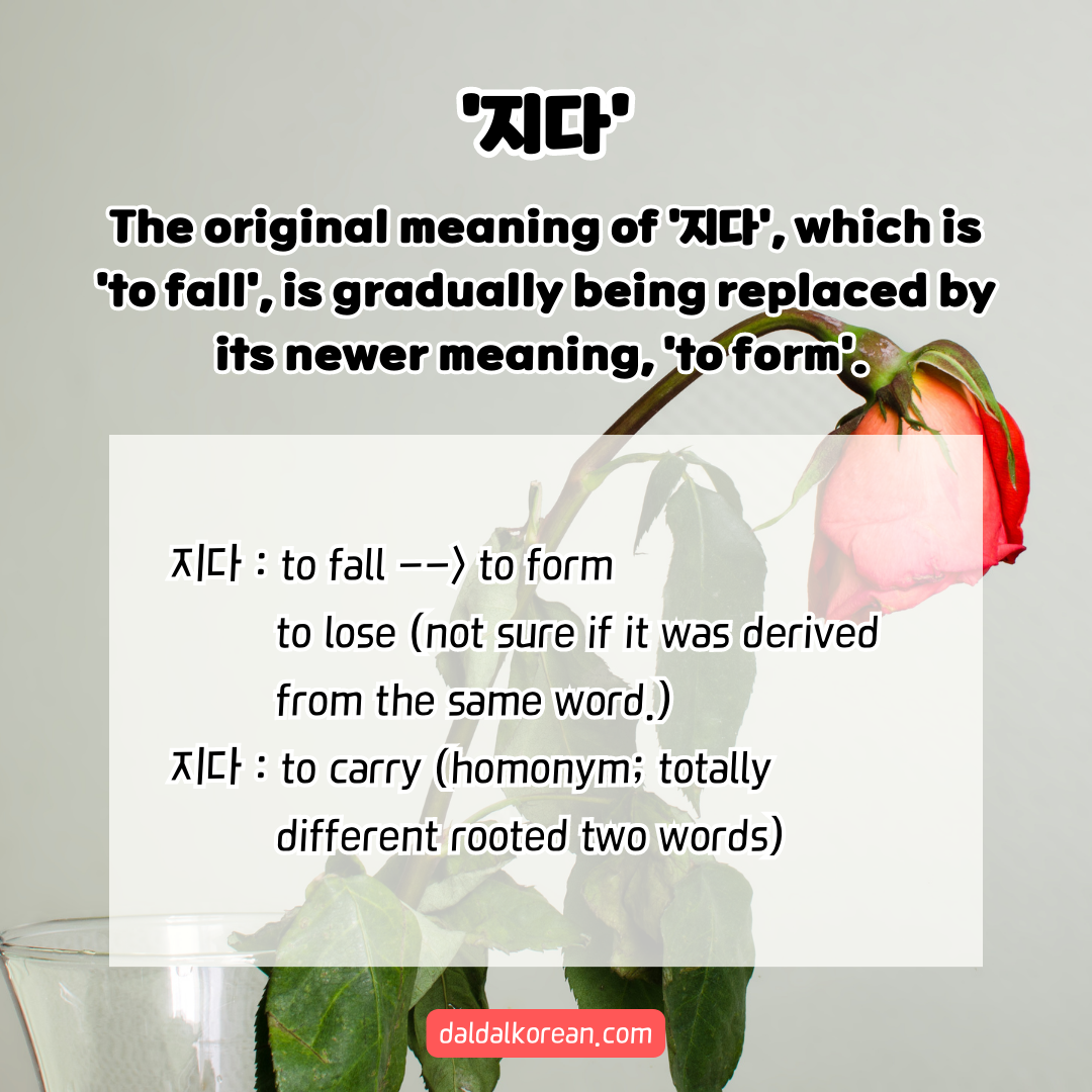 | 떨어지다 *지다 as 'to fall' is losing it's original position |